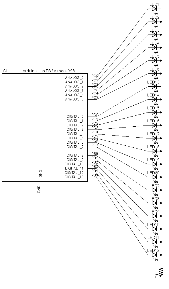 Anstelle der Bezeichnungen der Arduino-Pins können wir auch die Bezeichnungen der Atmega328-Pins oder auch die Bezeichnungen der Atmega328-Register benutzen.
