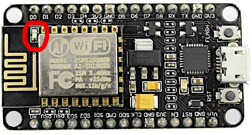 In unserem Fall soll die Board-LED an GPIO Pin 2 (hier rot eingekreist) blinken.