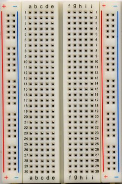 oder beim freundlichen Elektronikfachhändler um die Ecke. So ein Steckbrett hat natürlich den Vorteil, daß man nicht löten