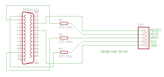 aus einem Parallelportstecker, drei Widerständen, einem Stück