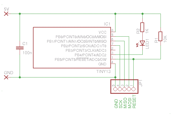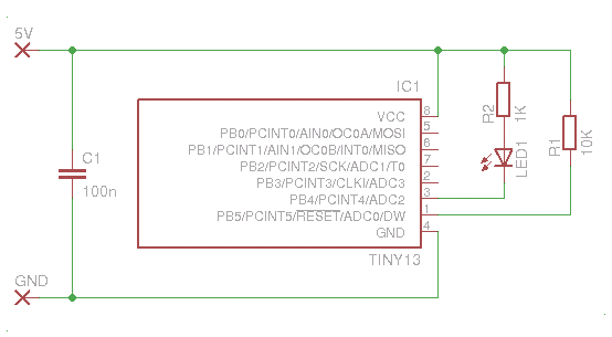 Ziel: Ein Attiny13 soll eine LED blinken lassen.